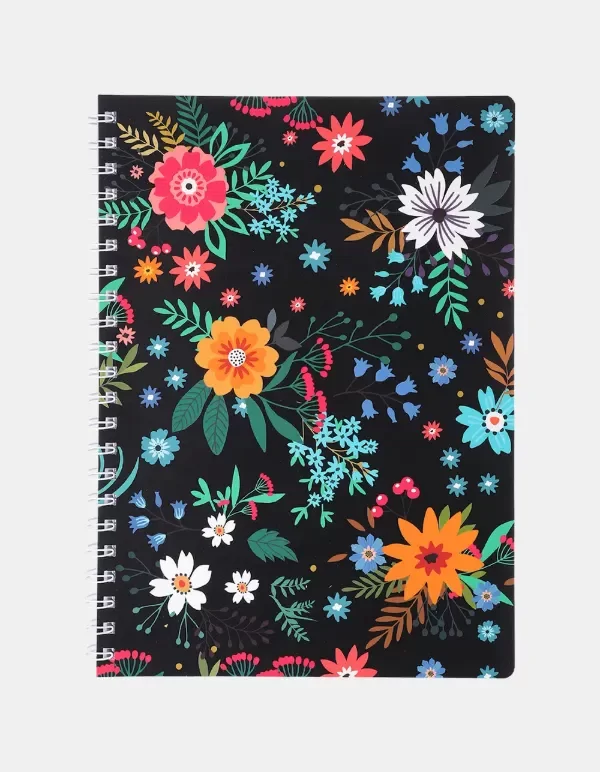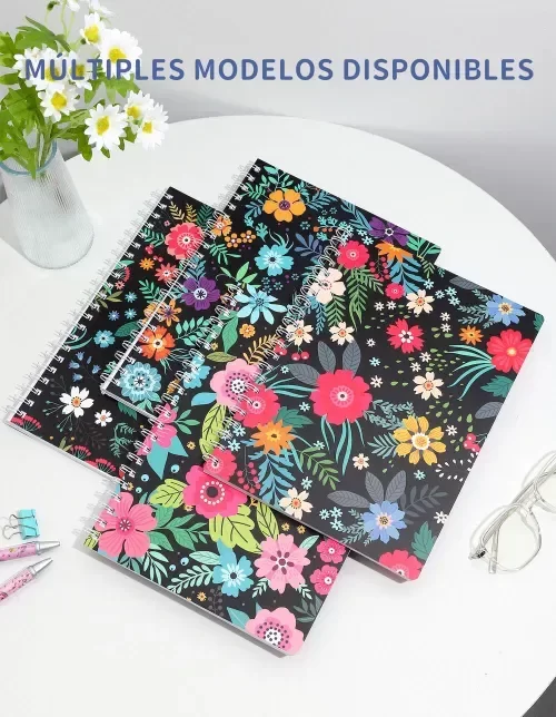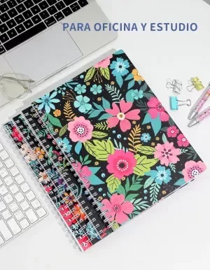 Ideal para la escuela, la oficina o uso personal, este cuaderno combina practicidad y estilo.Su tapa dura con estampado de flores moderno y llamativo, mientras que sus 80 páginas rayadas permiten una escritura ordenada. El encuadernado anillado facilita el uso y permite abrir el cuaderno en 360°.