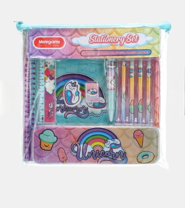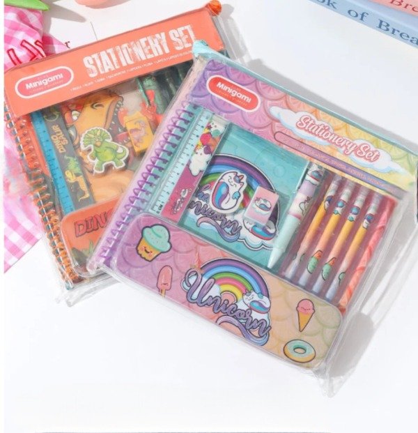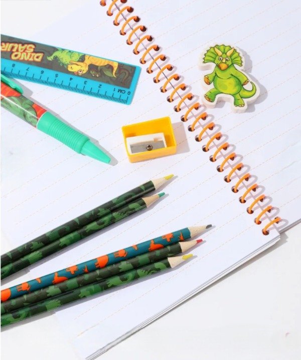 Set de librería con diseño colorido y práctico, ideal para uso diario en estudio o escuela. Todos los artículos vienen incluidos en un solo set, listo para usar y fácil de llevar.