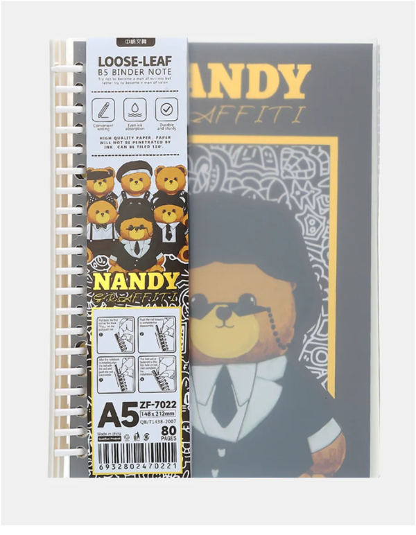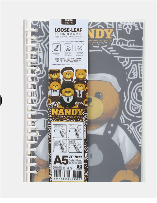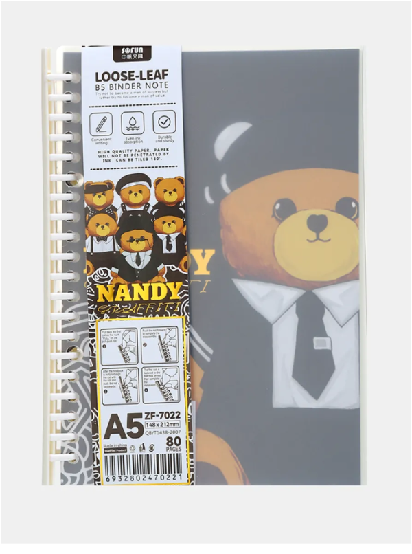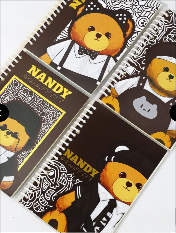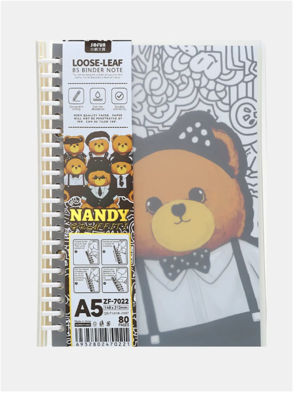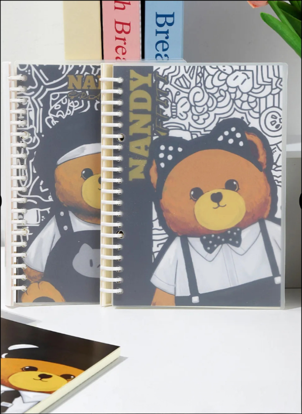 Cuaderno espiral con tapa de PVC, y diseño de oso ilustrado, ideal para uso escolar, oficina o notas diarias.