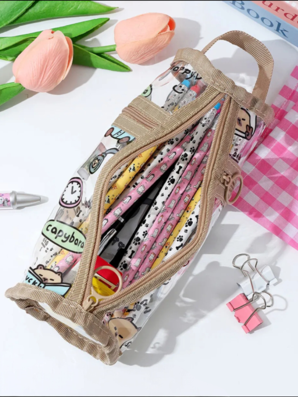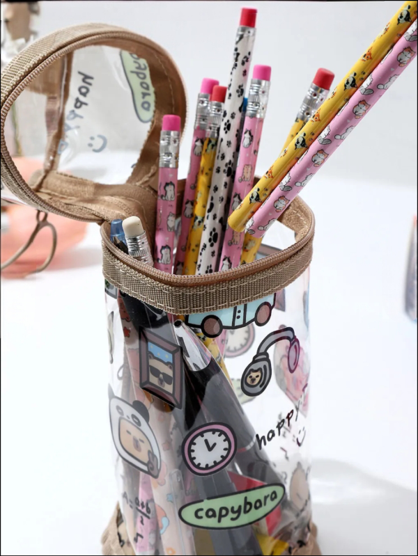 Cartuchera con diseño de animalito, adorable y tierno, ideal para quienes buscan un accesorio práctico con un toque divertido. Su formato vertical permite usarlo tanto como cartuchera o como organizador de escritorio.