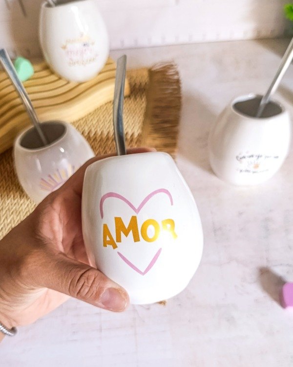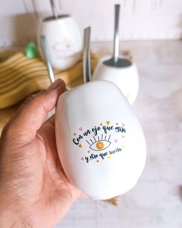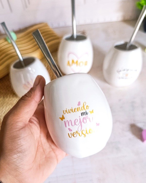 Mate de cerámica modelo ovo blanco