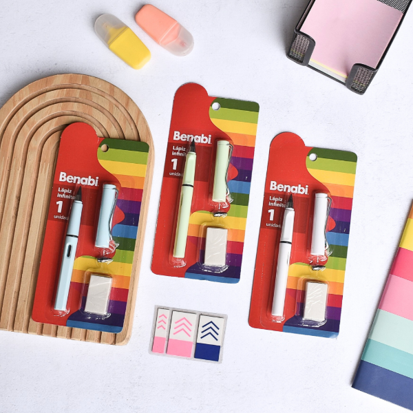 Contiene: 1 lapiz infinito, una goma y un respuesto de lapiz